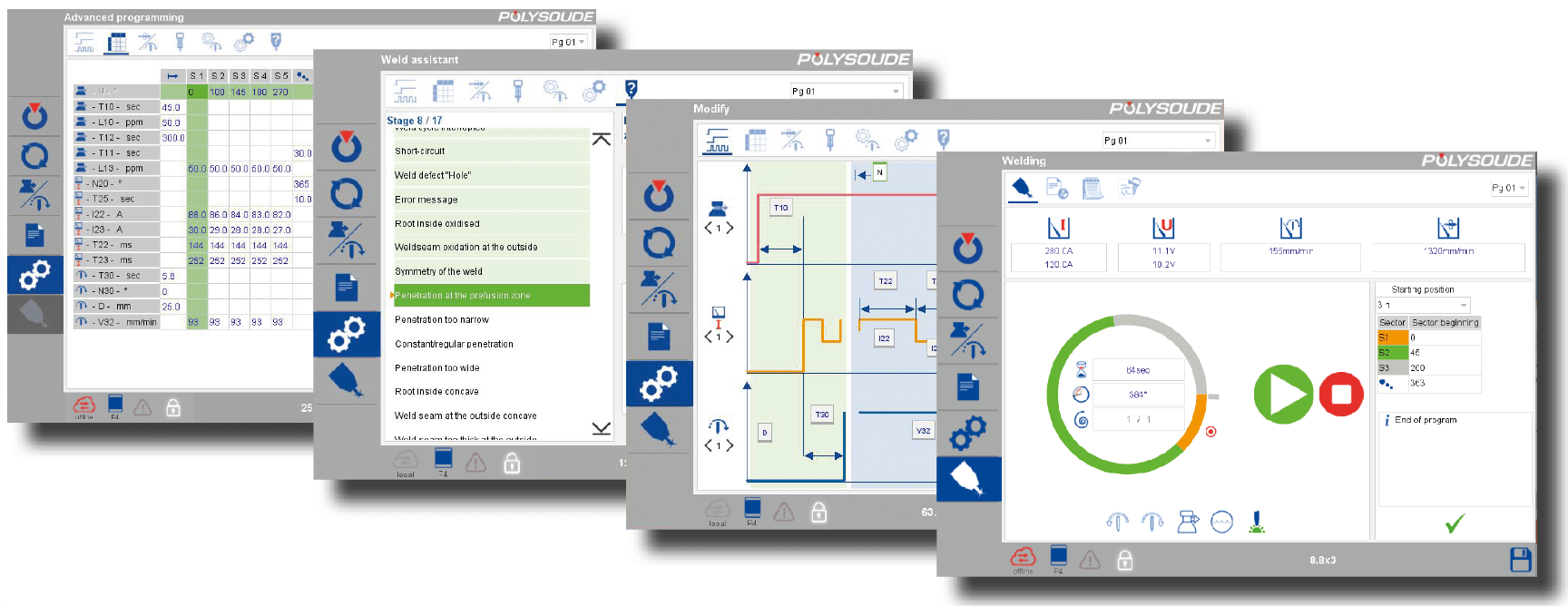 机械化和自动化TIG焊接随着电子系统的发展而不断进步,为所有位置的自动化焊接应用铺平了道路。复杂的自动焊接程序可以提前编程,焊接程序和指令存储在计算机上。数据可以通过闪存驱动器传输到指定的自动焊机,或者在更复杂的技术(如P6系列)情况下,通过结合图形用户界面(GUI)进一步开发编程。该GUI可进行完整的焊接数据管理,还提供了许多辅助功能,以支持任何TIG焊接程序的开发和完成,保证自动焊接的所有机械和机电参数的可重复控制。